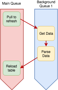 This is just a fancy way of saying 'doing stuff at the same time'. The iPhone is capable of executing multiple threads at the same time. I could go into the nitty gritty details about threads and queues, but you don't really care about them. You just want to use your OperationQueue... Fair enough :) Just remember one thing - on your iOS device you'll see two types of queues; the main queue, and everything else. In your day-to-day development, you can split all of your operations as being run on the main queue or off the main queue. Clearly, the main queue is important... So what is it exactly? Well, it's where your UI gets updated. All the user interactions and all the animations get executed on the main queue. You don't really want to run your code on the main queue because you'll be blocking the UI and the user will see the UI as being unresponsive so they might even kill your app.The Queues