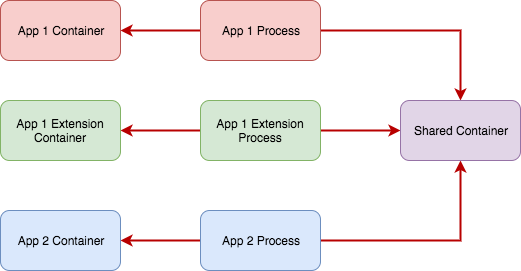 Extensions are embedded into your bundle, but they run as a separate process with their own memory address space and their own container. So, naturally, the extension can't access instances of classes of the main target. If you try and share data by saving it into the documents directory it won't work either, because extensions have their own containers. There's an easy way to share data between your app and the extension. You can use 'App Groups' for that. Think of an App Group as a shared container that all your apps can access: