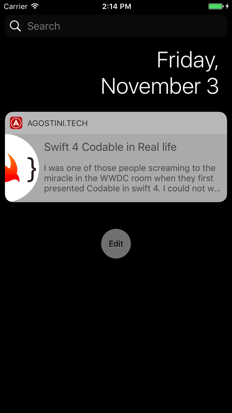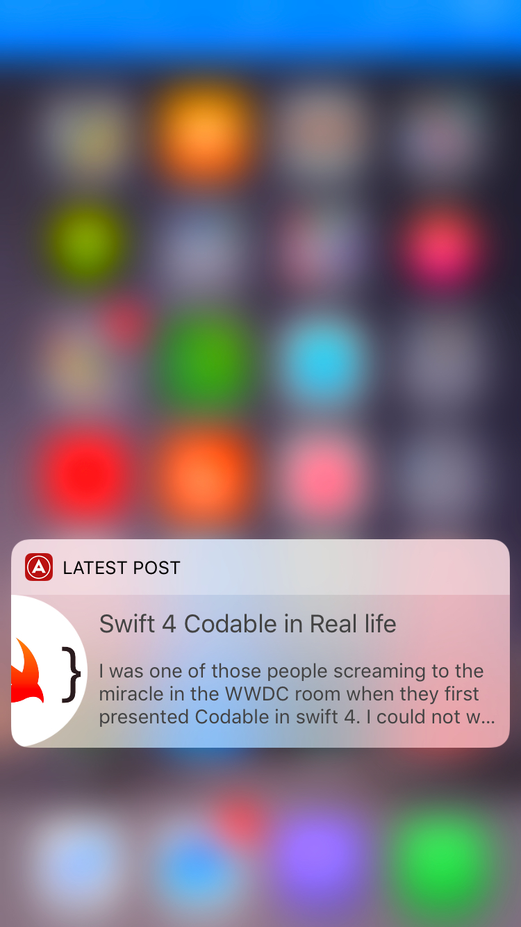 Today widgets are small view controllers that your users can add to their 'Today' view. They are good for displaying the most relevant information to your users. In this article we're going to create a today widget and display a latest article for the accompanying app for this blog. Let's jump in...