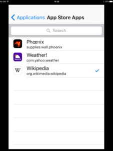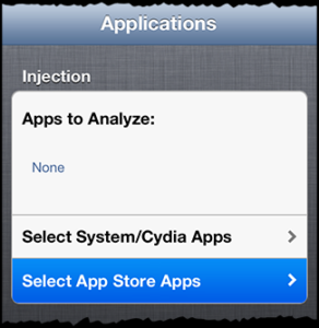 Before the first run, Snoop-it should be configured properly. For this, you need to select the App you want to analyze using the "Snoop-it Configuration App". Within the 'Applications' tab, you can choose between available System/Cydia Apps or Apps installed from the official Apple App Store. For this blog, my DEMO will be Wikipedia app so I select it.
