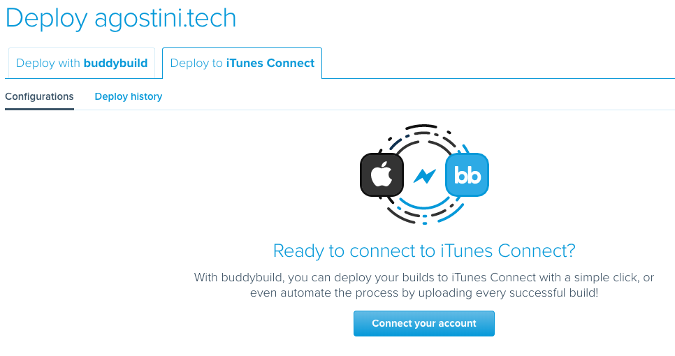 Building and testing are the heart of a good CI system, but buddybuild offers you more. You can actually deploy your apps. You can deploy them to your testers using the internal buddybuild system, much like crashlytics where they'll handle distributing your app to your beta testers. This is cool, but a really nice feature is deployment to iTunes Connect. Your build will be available on TestFlight and you can submit it for review right there and then.Connect to iTunes Connect