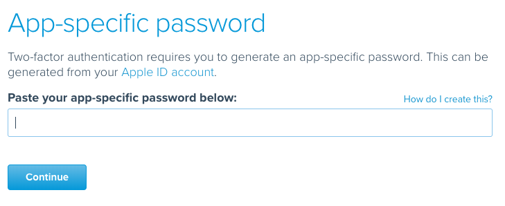 If you use two factor authentication, you'll have to create an application specific key. When you do, you just enter it: