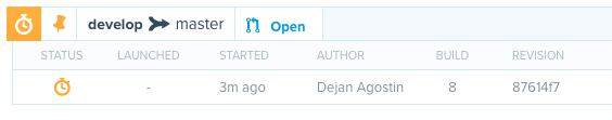 Once you open your pull request from develop into master buddybuild will automatically start building your pull request. You'll see it in the dashboard:
