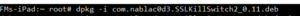 Download and copy the Debian package to the device; install it as followed:
