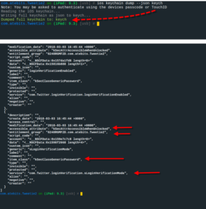 Dumping the keychain is easy in one commandios keychain dump.