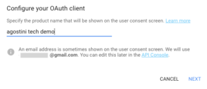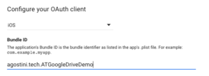 You will be presented with a simple wizard where you will have to configure your OAuth client. You will need your bundle ID for this step. Select your project from the dropdown list: