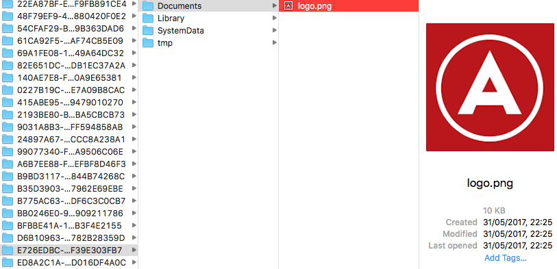 Now that we've signed in, we'll upload a simple image. In this demo we'll upload the site logo. The easiest way to do this, without having to work too much on the UI is to copy files to your app documents directory, something like this: