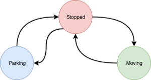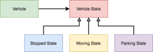 If you're thinking about how to implement this behaviour into your vehicle class, you might be thinking of using enums to store the state information in a private variable of the vehicle class. Imagine how your functions would look like, you would end up with a lot of switch cases in your code. Your vehicle class would become pretty big and difficult to maintain.