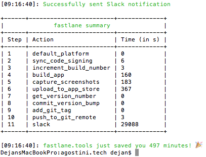 After a few minutes you will be greeted with a success message from fastlane: