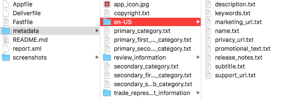 Since we've asked fastlane to manage our app's metadata we can see a folder with our existing metadata: