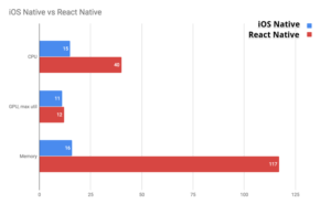 The native code obviously outperforms React Native but in GPU utilization it has the similar performance which is the most important part of the app. The CPU load is much higher and it definitely needs optimization in critical places and it is really possible with Native modules. CPU load and memory usage are given tradeoffs for a code sharing and the interpretation of scrips along with a larger number of libraries in cross-platform applications.