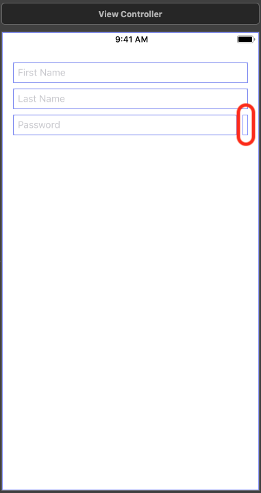 The view to the right of the password text field is the custom view that we're getting with zxcvbn. Don't forget to set the custom class on it: