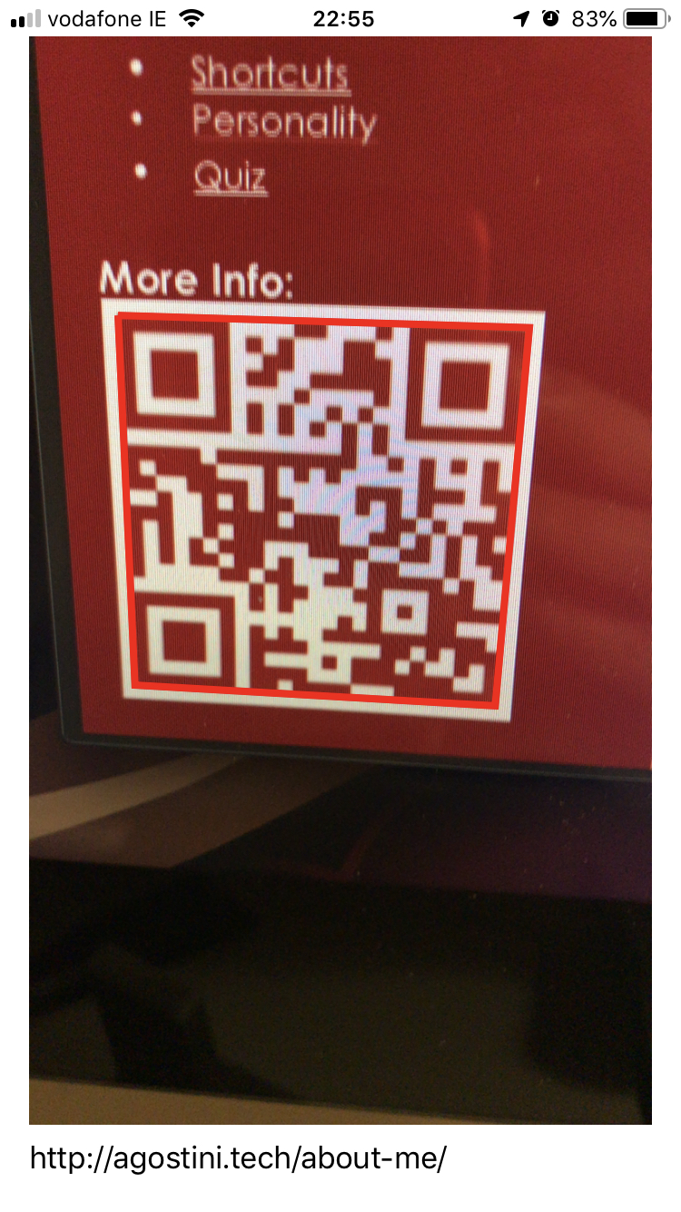You can see the red rectangle surrounding the QR code. You get this pretty much for free, we'll come to that in a bit.