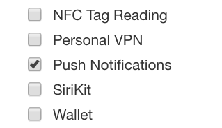 Head over to your Apple Developer account and create a new App ID and make sure you select the 'Push Notifications' checkmark: