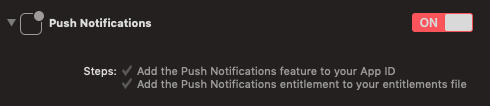 As you might have imagined, setting up the project for push notifications will be very complicated :) Make sure you use the same bundle ID and enable the push notifications in the capabilities tab of the target:
